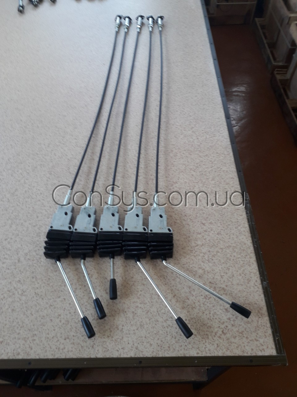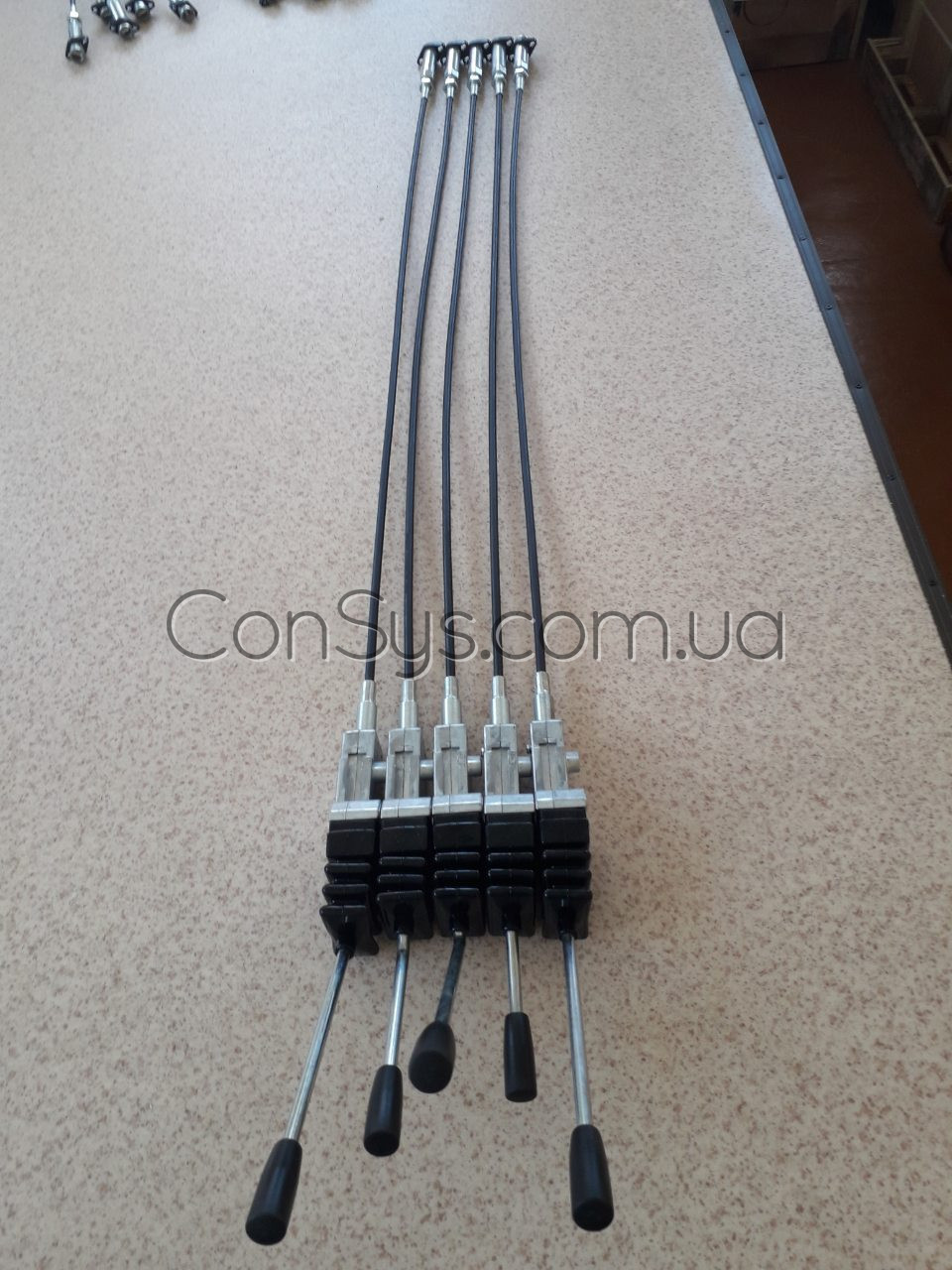 Запорно-регулирующего элемент гидрораспределителя обусловливает существование следующих двух типов распределителей: клапанные и золотниковые. Первые характеризуются больше герметичностью и давлением в системе. Вторые более компактные по габаритам и плавные по своей работе. КонСис предлагает троса гидрораспределителя для обоих видов устройств. Ниже представлены живые фотографии наших тросов в сборе с распределителями.
